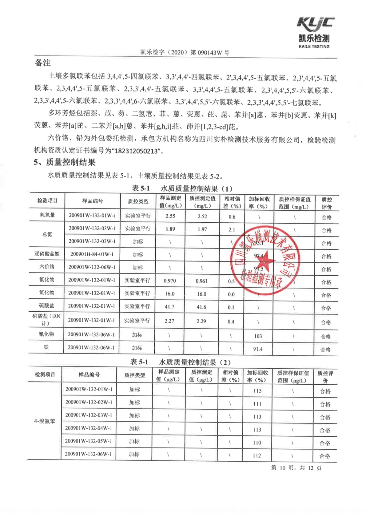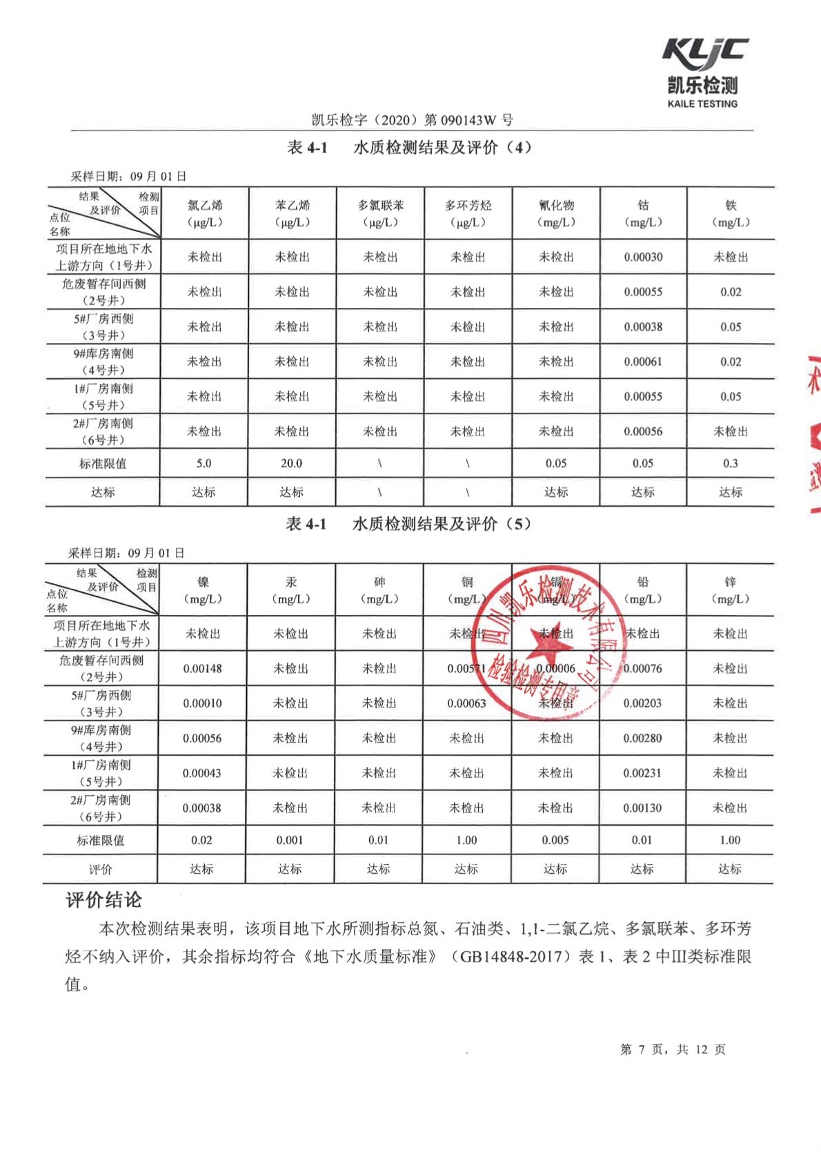 凯乐检字(2020)第090143W号(土壤、地下水检测)