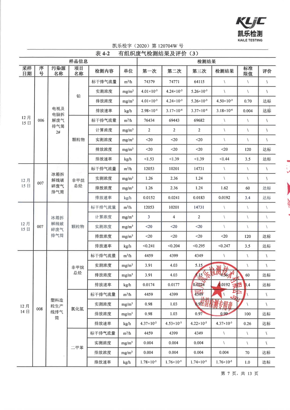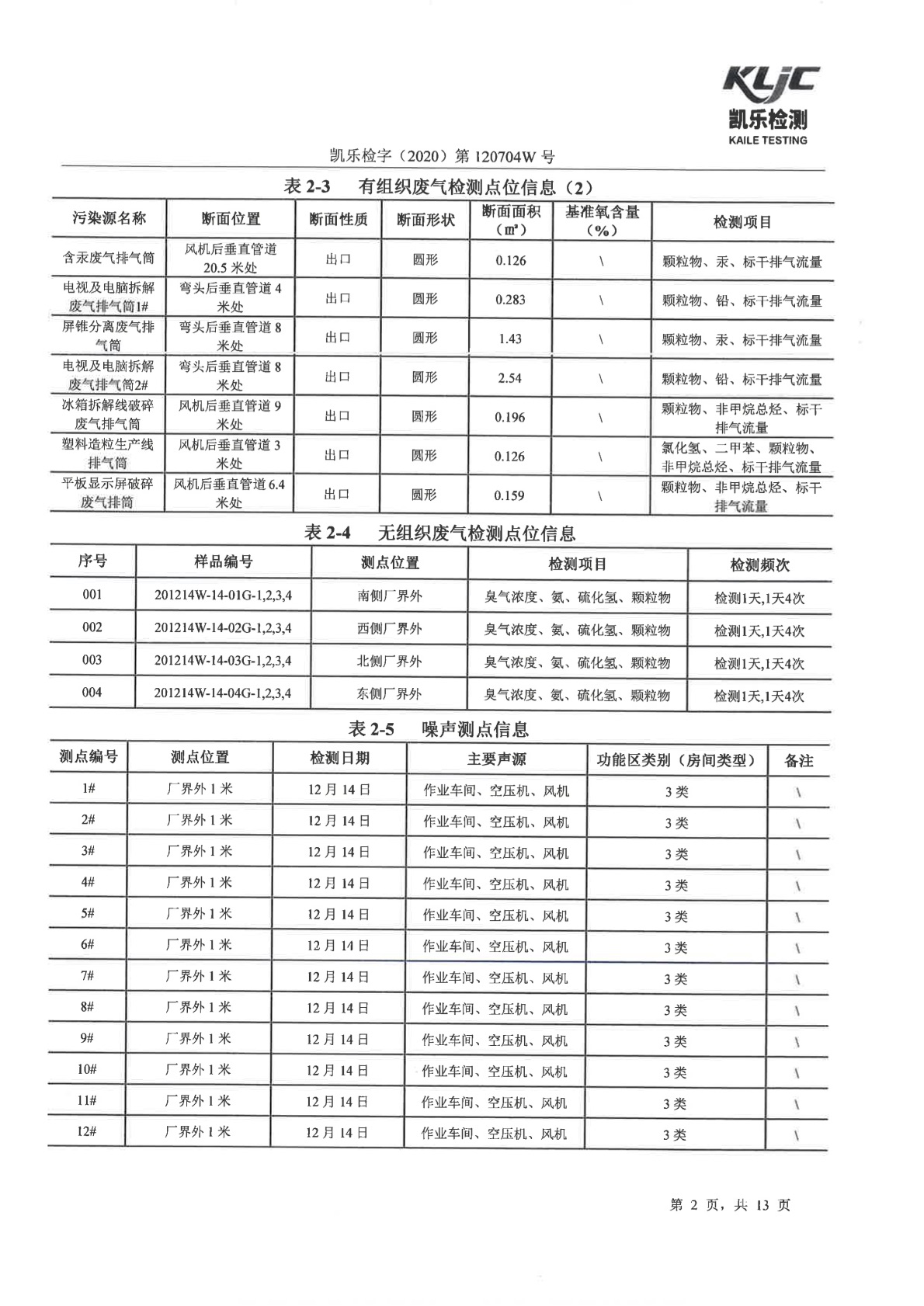 凯乐检字(2020)第120704W号-废气、废水、噪声检测(2020年第四季度)