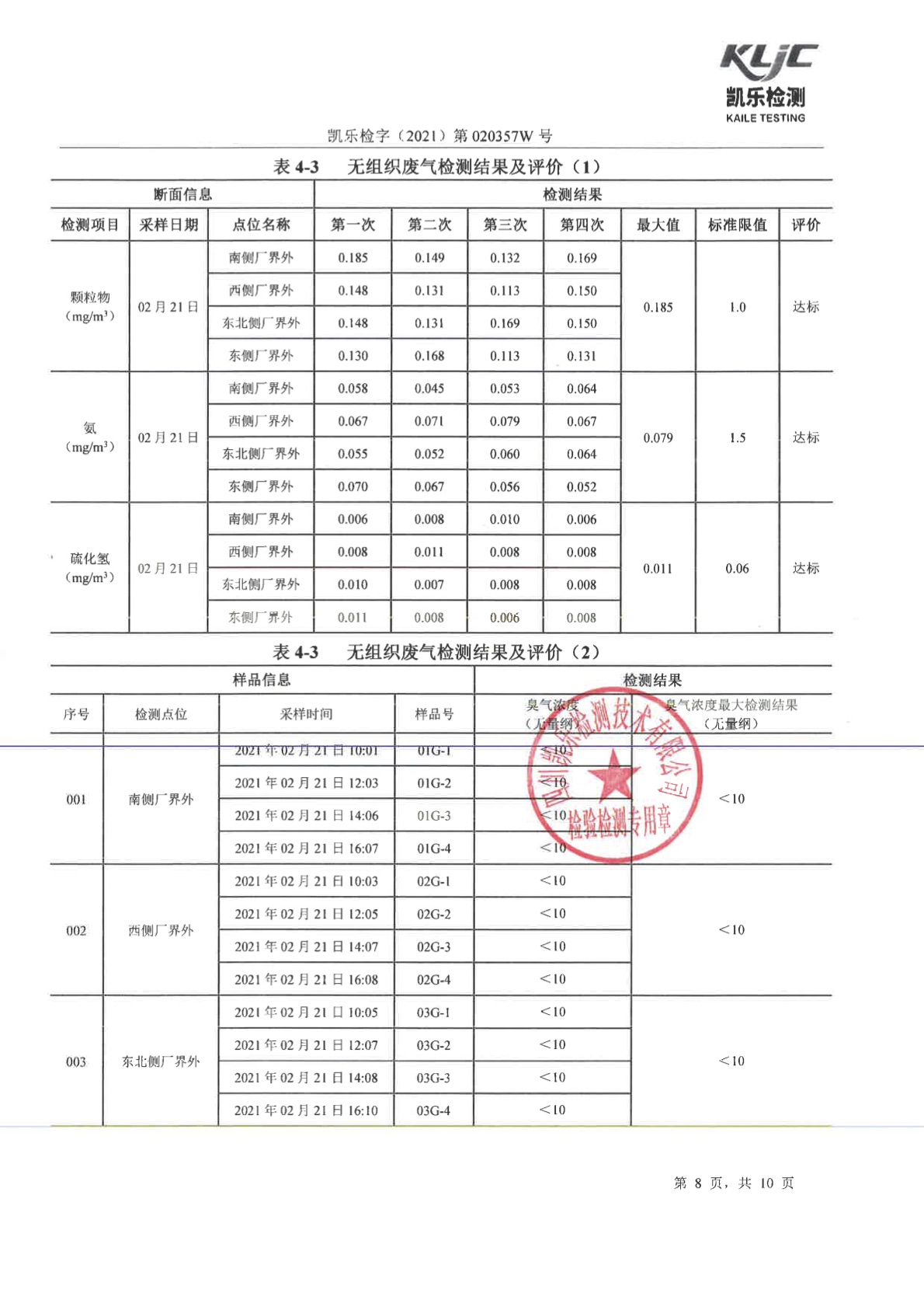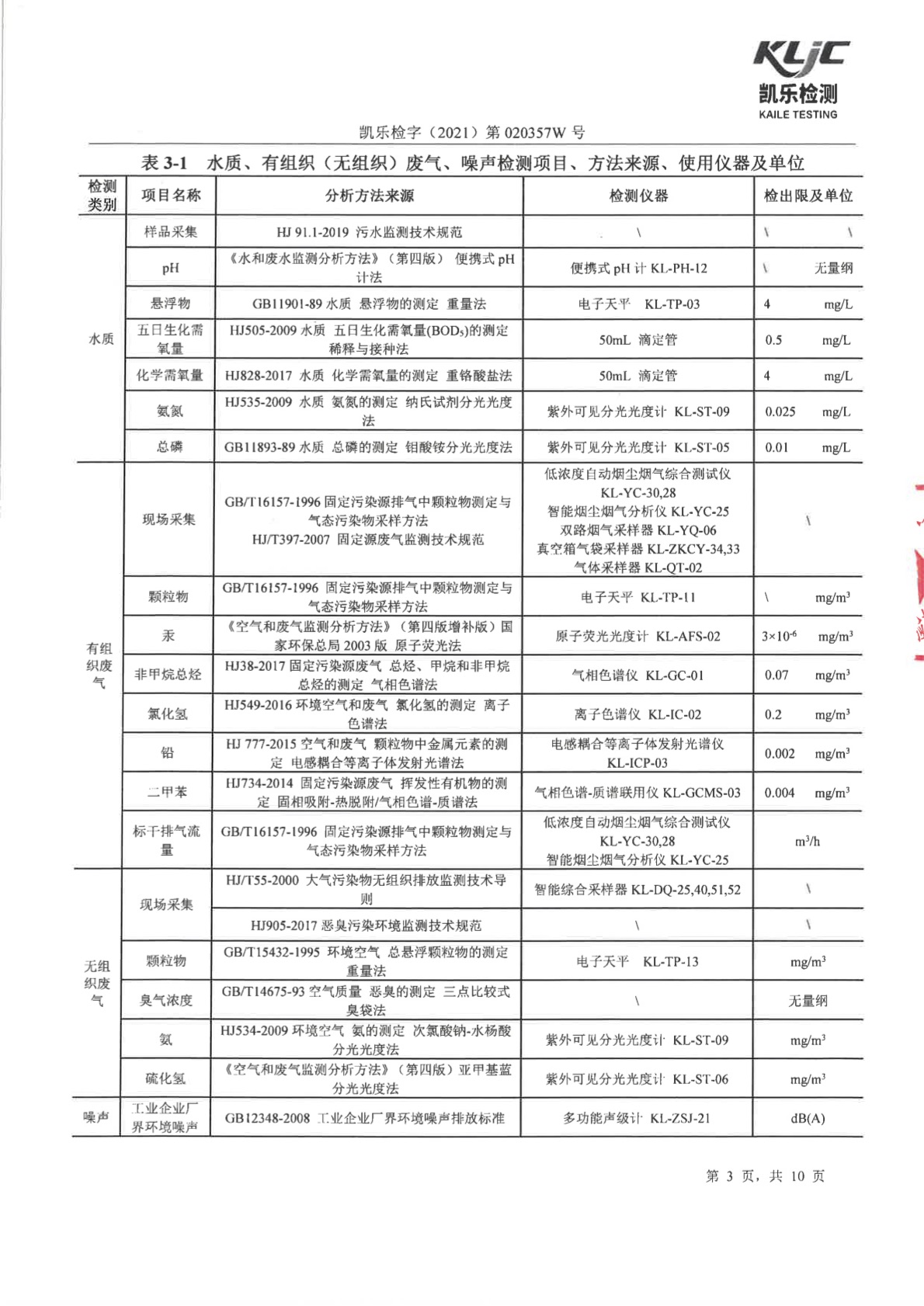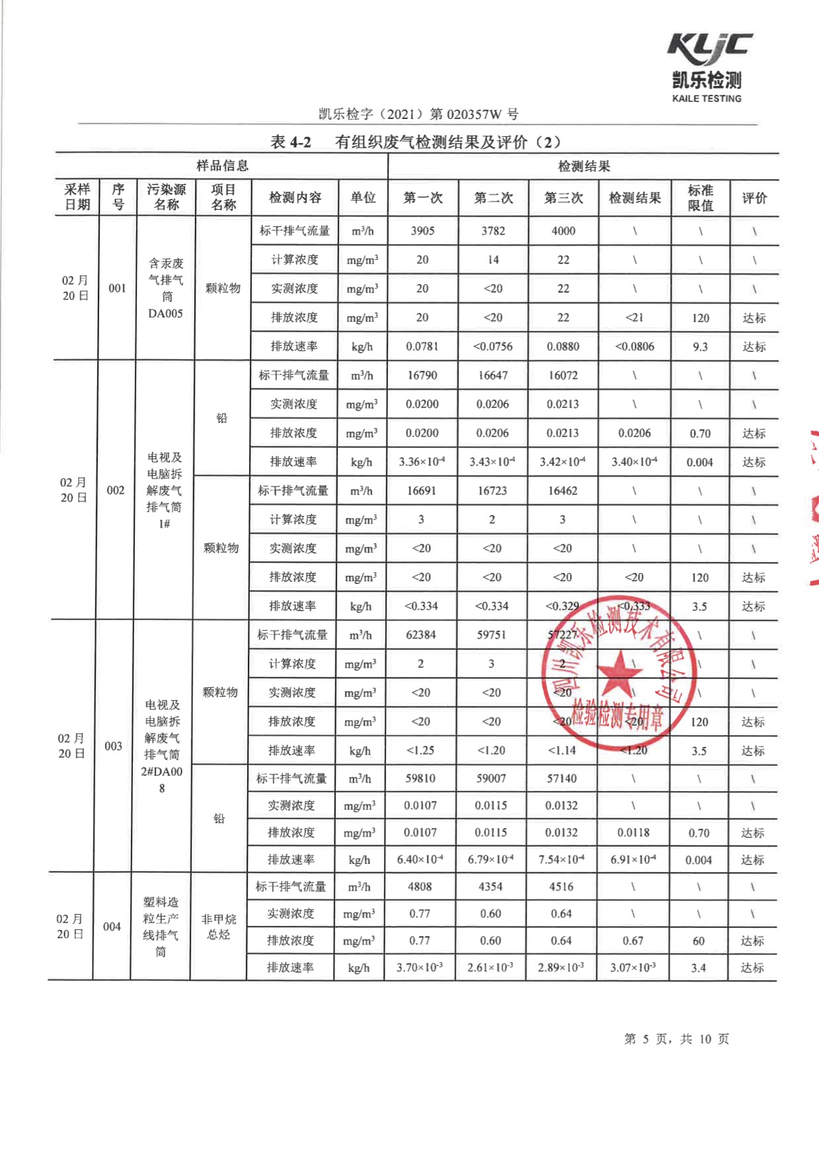 长虹格润第1季度检测报告 凯乐检字(2021)第020357W号
