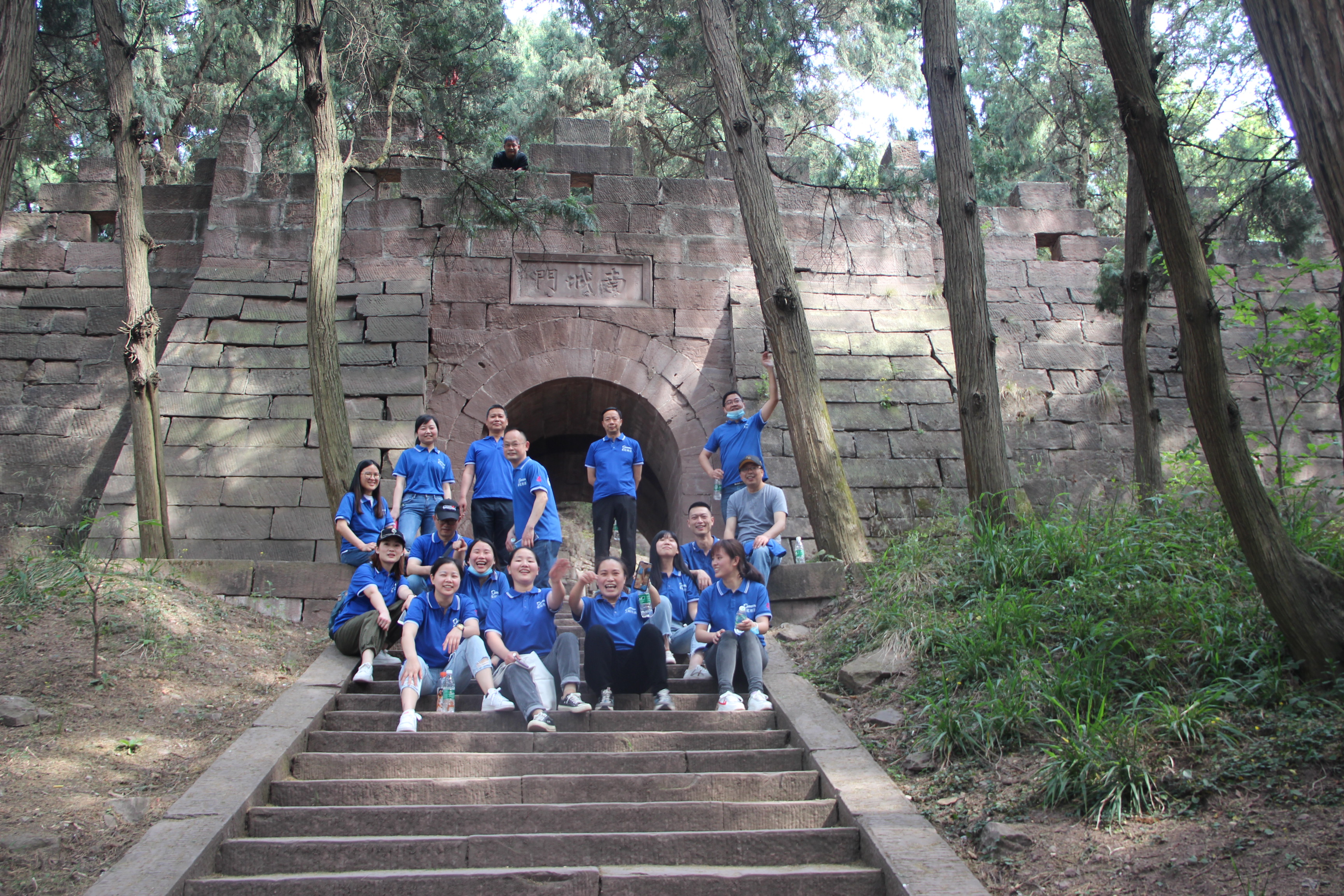 整条石阶路线陡峭险峻,山上温度也忽高忽低,但伙伴们登山的热情却丝毫不受影响,情绪高昂,登山先锋队更是越攀越勇,你追我赶,竟比车队早一步到达目的地。