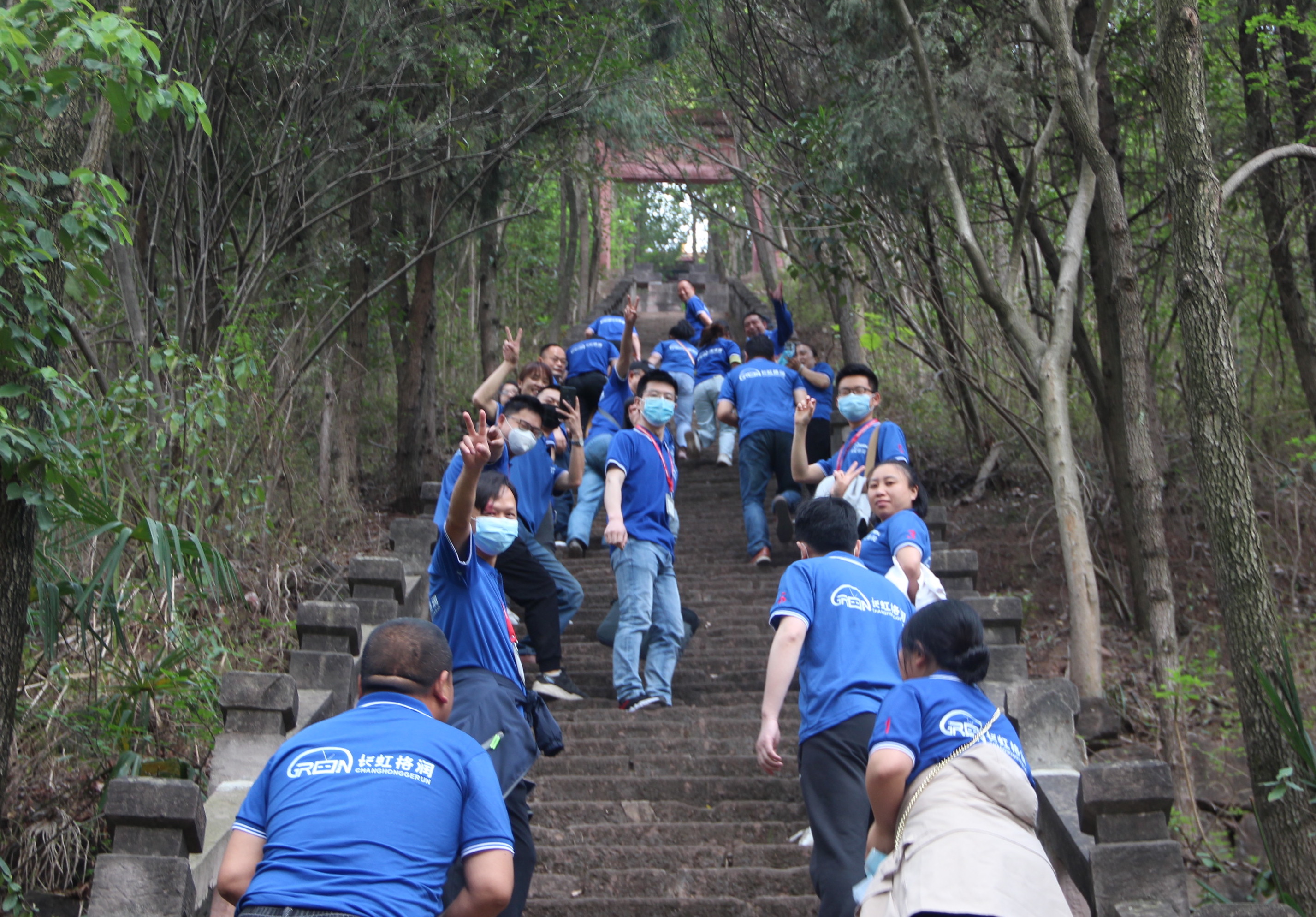 本次登山活动选择了以清幽奇丽闻名蜀中,有“云顶晴岚”胜景的云顶山。上山之路由无尽石阶组成,直达山顶,借以喻格润事业“拾级而上,步步登高” 。