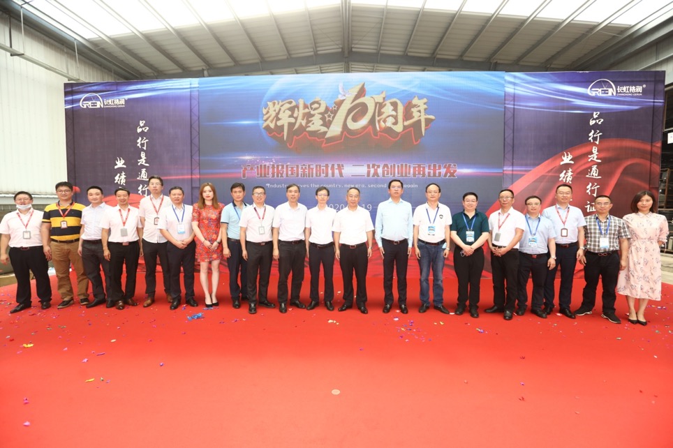 2020年6月19日,长虹格润公司召开以“产业报国新时代,二次创业再出发”为主题的十周年庆典盛会。四川省经信厅、四川省环保产业协会、成都市生态环保局、成都市经信局、金堂县政府等领导及长虹集团党委副书记谭明献、长虹股份公司副总经理潘晓勇、长虹公司新能源材料实验室首席科学家高剑等出席了本次大会。