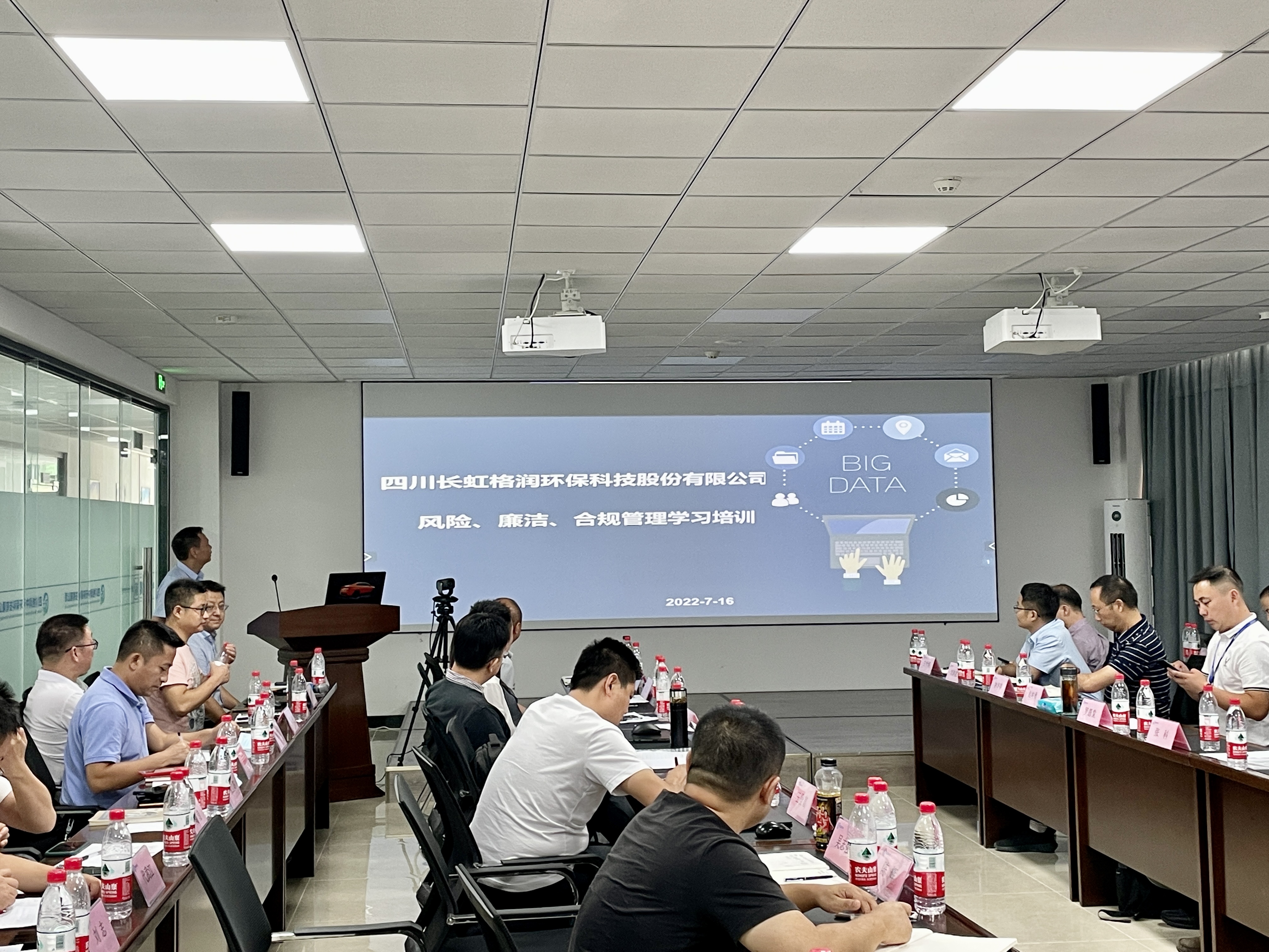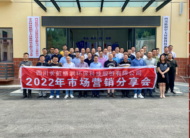 7月16日迎来了四川长虹格润环保科技股份有限公司2022年市场营销分享会,在四川格润中天环保科技有限公司召开。长虹格润公司总经理吴章杰、副总经理李辉、李毅、吴晓刚、各子公司管理人员及公司各职能部门领导、人员等40余人参加了此次会议。分享会由长虹格润运营管理部部长陈方春主持。