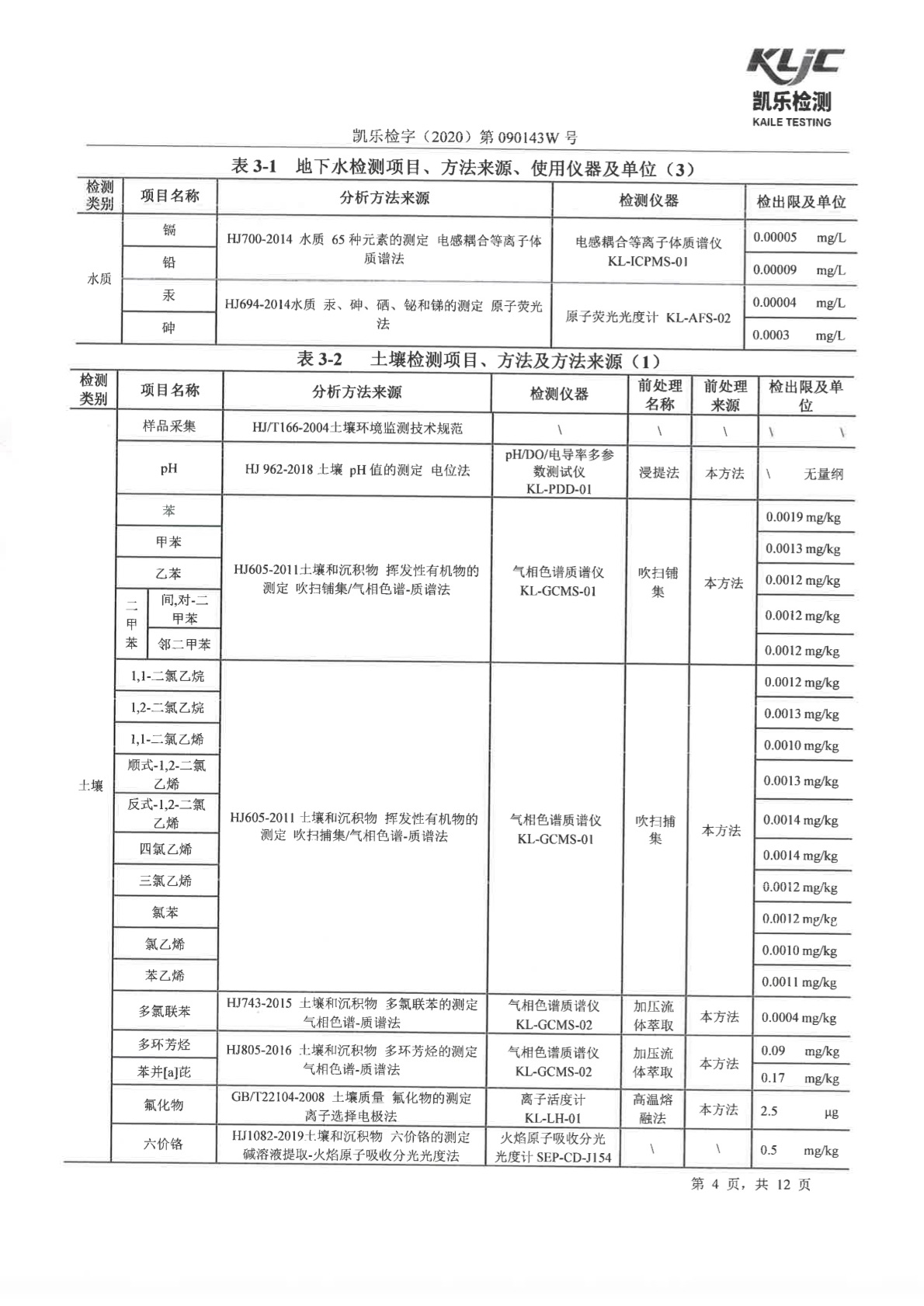 凯乐检字(2020)第090143W号(土壤、地下水检测)