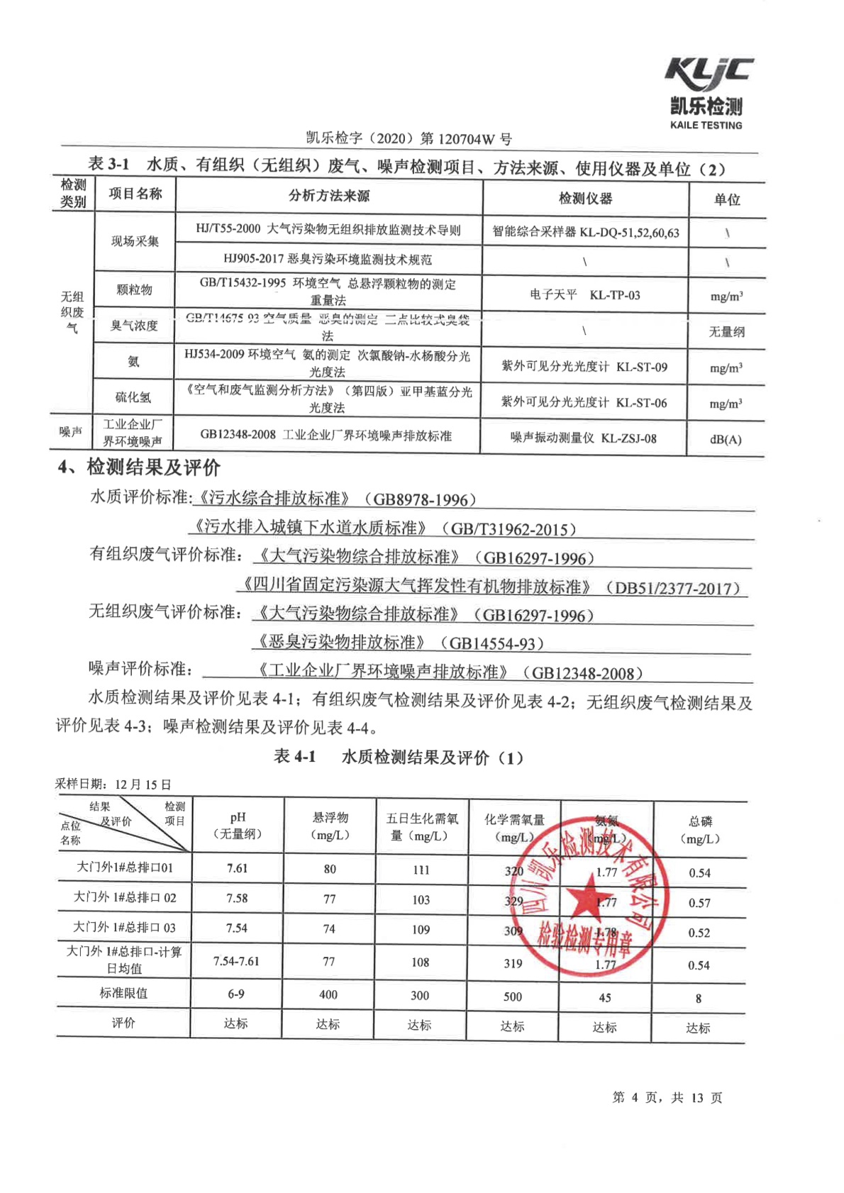 凯乐检字(2020)第120704W号-废气、废水、噪声检测(2020年第四季度)