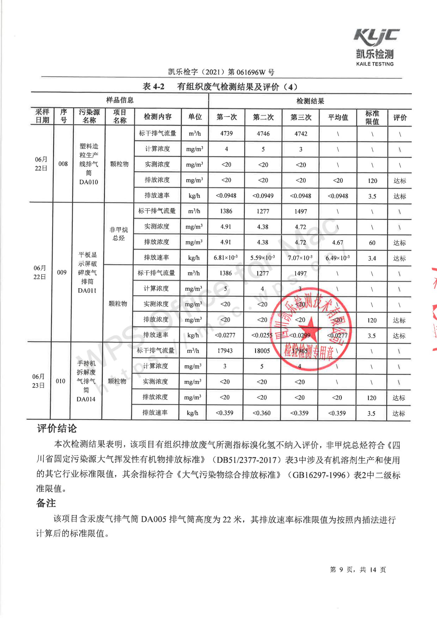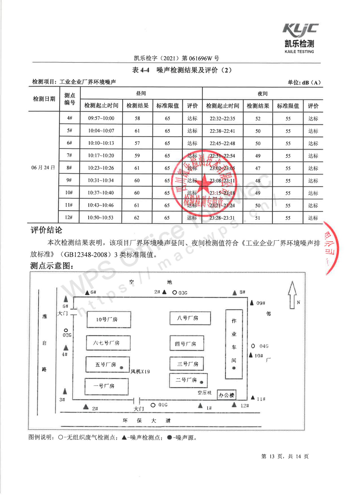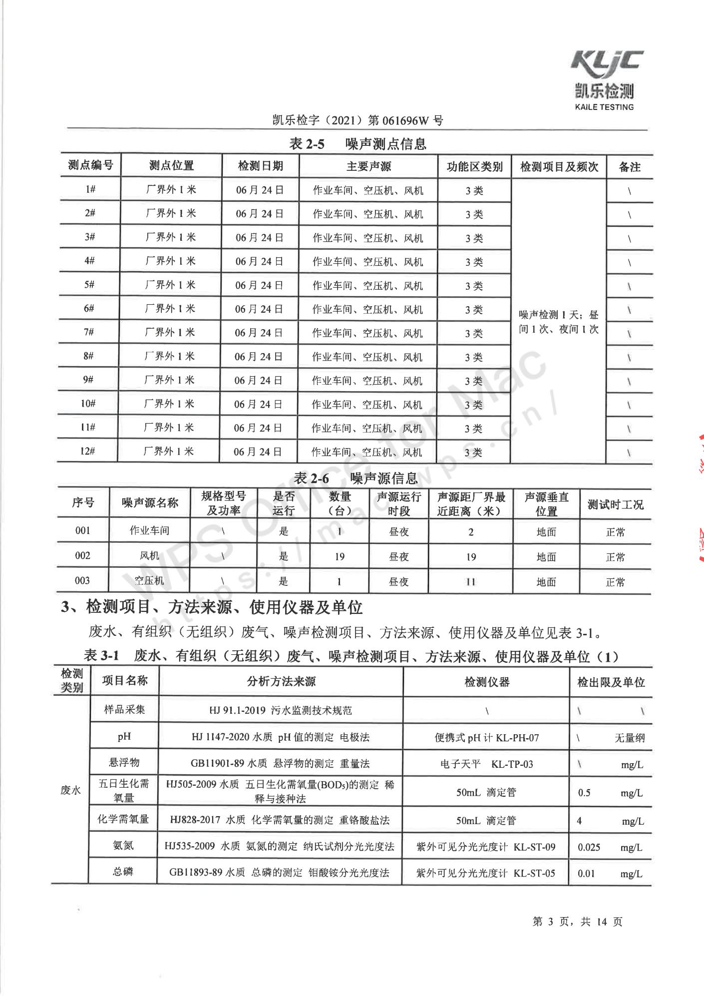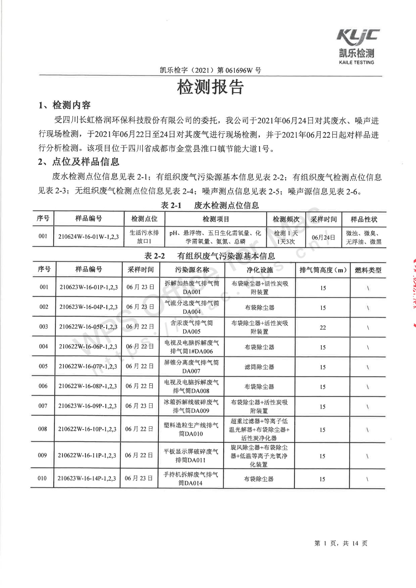 凯乐检字(2021)第061696W号四川长虹格润环保科技股份有限公司(废气、废水、噪声检测(2021年第二季度))