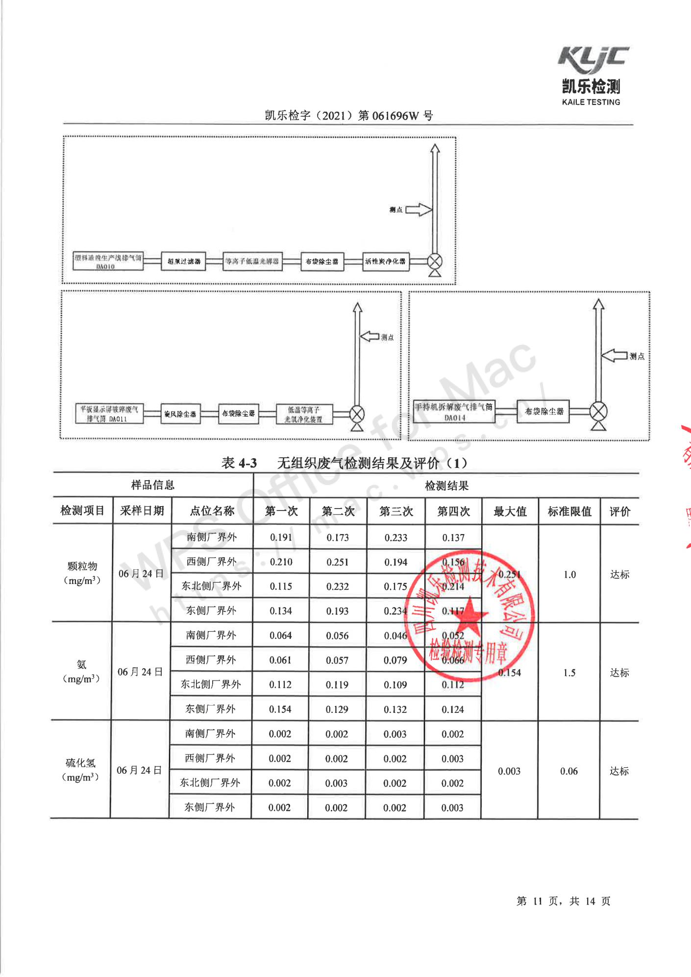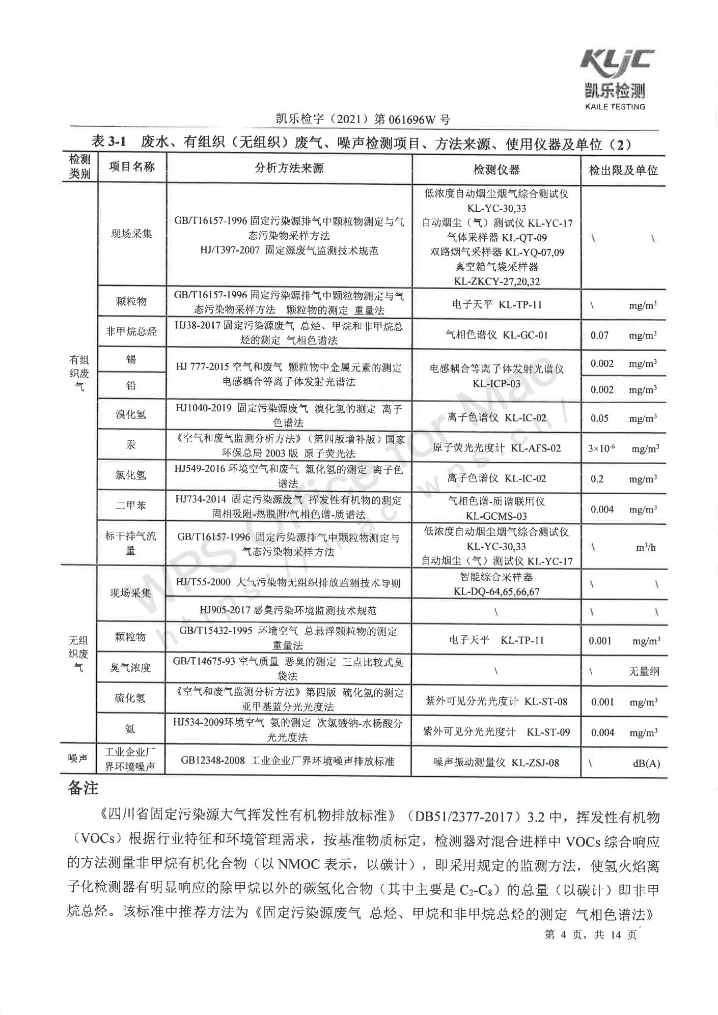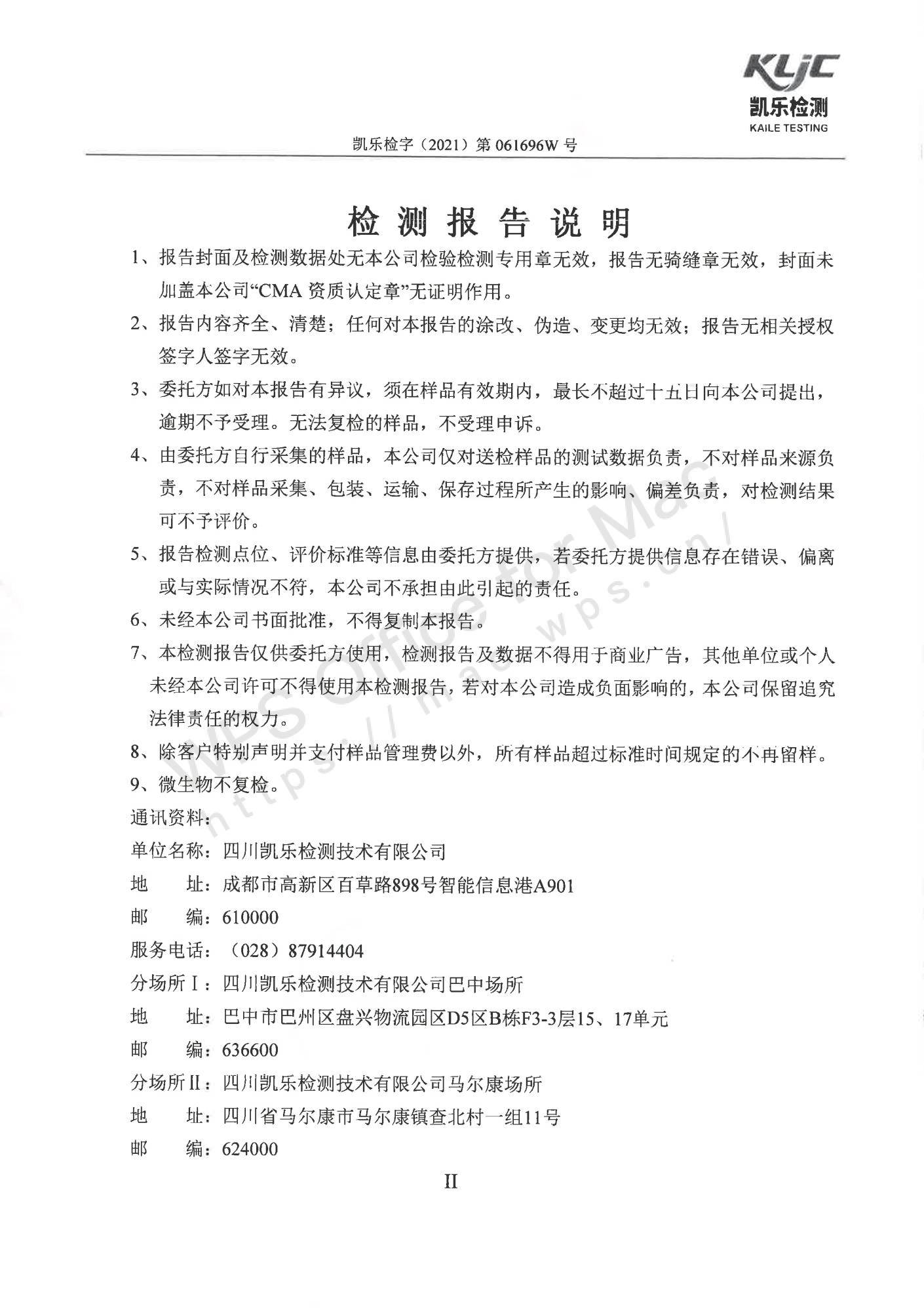 凯乐检字(2021)第061696W号四川长虹格润环保科技股份有限公司(废气、废水、噪声检测(2021年第二季度))