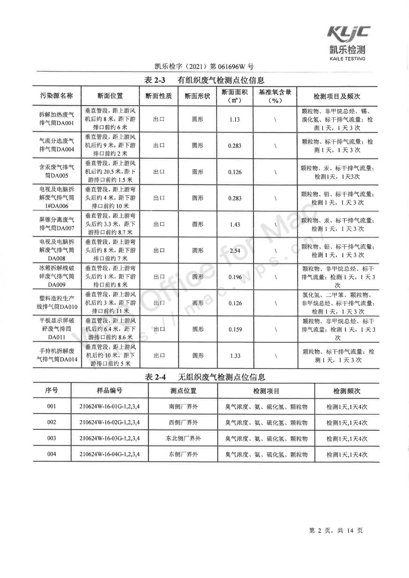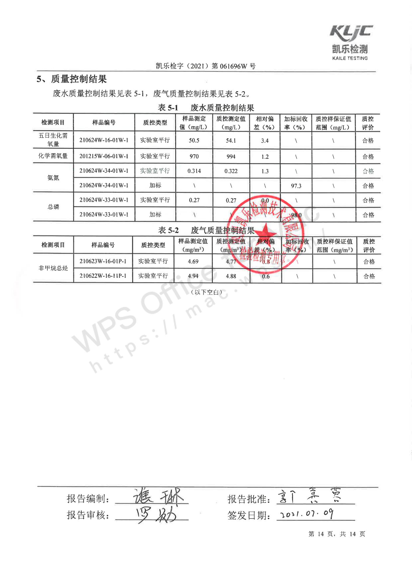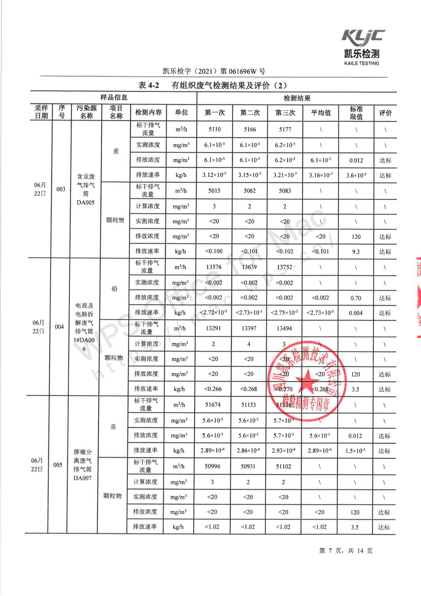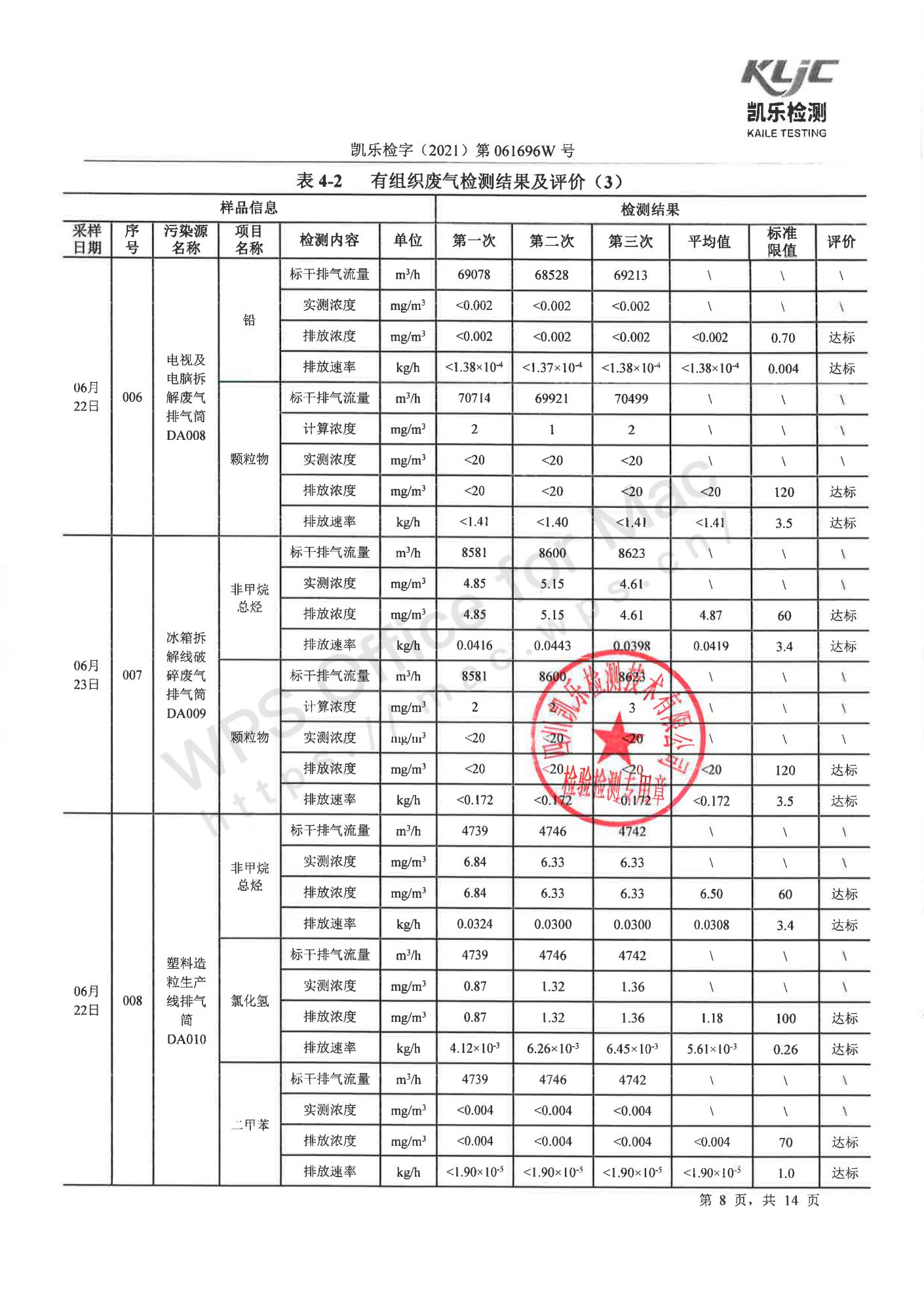 凯乐检字(2021)第061696W号四川长虹格润环保科技股份有限公司(废气、废水、噪声检测(2021年第二季度))